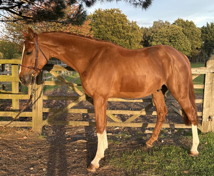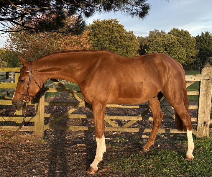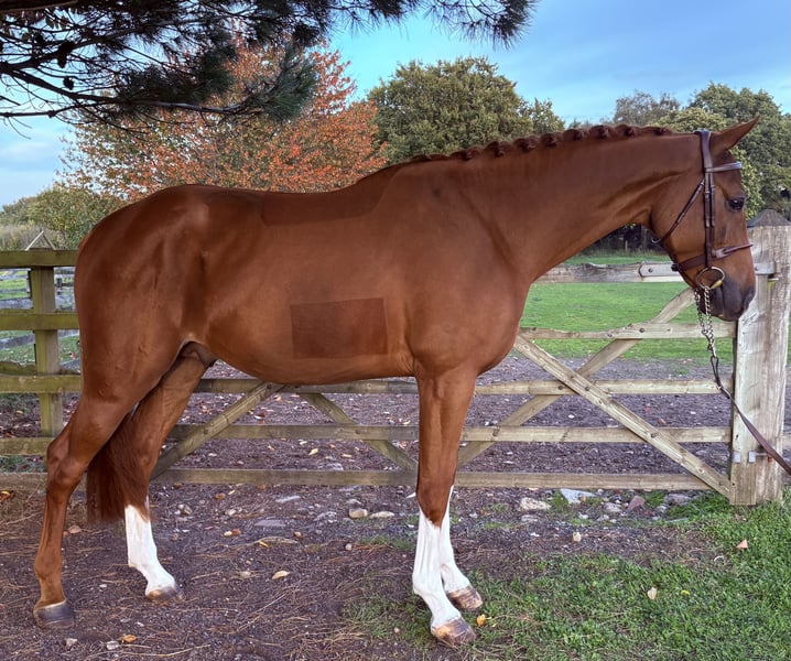 Directly out of the amazing Olympic stallion For Pleasure! Festival is a truly eye-catching and beautifully built horse, with all the chrome one could wish for. He is a kind and friendly stallion, easy to handle both in and out of the stable, and he absolutely loves attention and cuddles. He is straightforward to work with and lightly started — long-reined, lunged, and accustomed to tack — ready for someone to put their own mark on him. Festival is progressing nicely, showing an excellent temperament and a wise, sensible attitude toward his work. He is ready for his next rider to take him to the next stage of his ridden career. This young stallion is proving to be of real quality and will make a strong contender for the five-year-old classes next season. When loose jumping, his talent truly shines: he is quick off the ground, athletic, and careful — showing all the right qualities of a future top jumper. He is definitely one for the future — the kind you won’t find easily as a five-year-old!