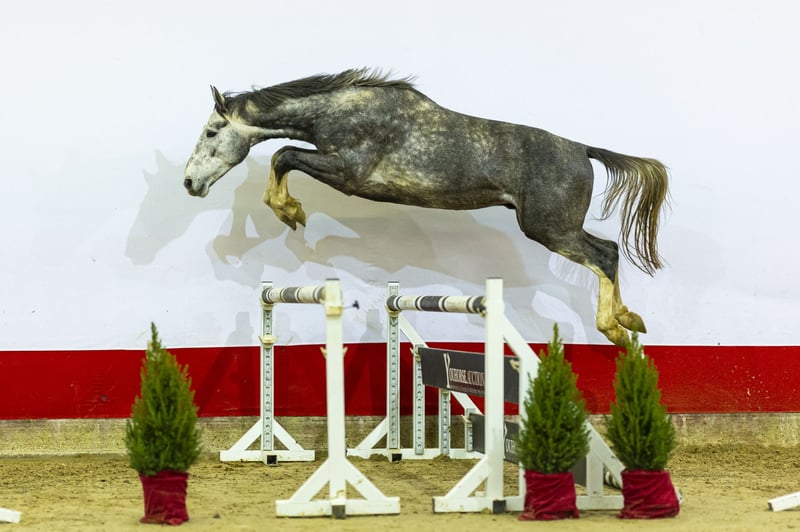 Matka tego konia została wcześniej sprzedana przez nas na aukcji i wyeksportowana do Stanów Zjednoczonych jako trzyletnia za 28 000 €. Wyrażenie „jaka matka, taki syn” tutaj zdecydowanie pasuje. Jej syn wykazuje bardzo silne zdolności skokowe, z dużym zakresem, dobrą techniką i dużą łatwością. Jest szybki z ziemi, poprawnie używa swojego ciała i wykazuje dobrą równowagę oraz orientację. Jego sposób skakania wyraźnie odzwierciedla jego jakość i przyszły potencjał. Ojciec Cornet Obolensky sam startował na poziomie 1,60 m w konkursach Grand Prix i jest jednym z najbardziej wpływowych ojców na świecie. Jego potomstwo obejmuje Clooney 51, Balou du Reventon i Coree, które odnoszą sukcesy na poziomie 1,60 m – 1,70 m. Jego wpływ widać w refleksach, precyzji i technice tego konia. Linia rodowa matki jest wyjątkowo silna. Matka Renske van ’t Eigenlo jest po Echo van ’t Spieveld, który sam startował na poziomie 1,60 m. Prababcia Olimpy van ’t Eigenlo, po Kannan GFE, startowała na poziomie 1,55 m. Rodzina ta obejmuje liczne konie osiągające wyniki powyżej 1,30 m, takie jak Quinn van ’t Eigenlo (1,50 m), Qamar van ’t Eigenlo (1,45 m), Jasmijn van ’t Eigenlo (1,55 m), Genasis (1,60 m) oraz Minute Man, zatwierdzony ogier i zwycięzca na poziomie 1,60 m w konkursach Grand Prix. Ta linia rodowa wielokrotnie udowadniała swoją wartość na arenach międzynarodowych. Młody koń z dużym zakresem, dobrą techniką i wielką łatwością w skakaniu, po sprawdzonej linii rodowej, która już odniosła sukces na rynku amerykańskim.