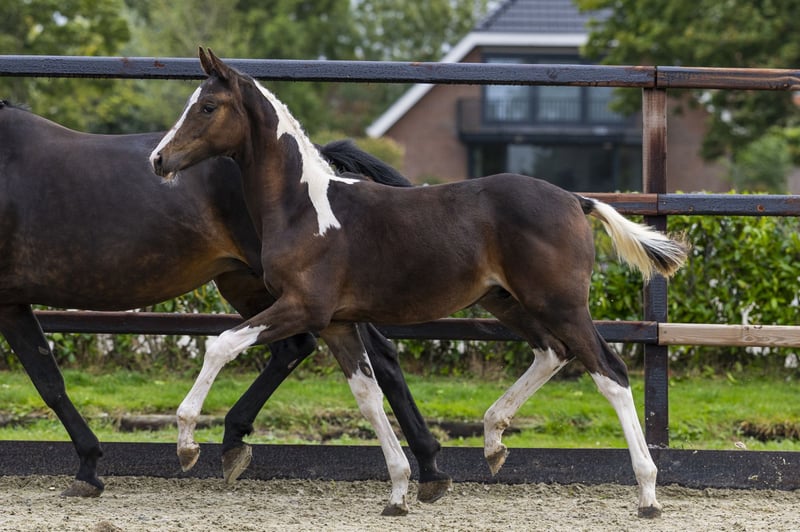 Dressage lovers take note. This beautiful colored Vagebond Du Coeur d’Or has everything going for him. A fantastic color, a very good trot and canter and he radiates strength. He will be comfortable to ride in the future. Sire DBM Zuperhero is a seven-year-old AES stallion that competes at Z1 dressage level and at low level in jumping and eventing. Dam Nimbria van Dantuma is, through the Grand Prix dressage stallion For Gribaldi, a granddaughter of the famous Grand Prix dressage stallion Gribaldi. Granddam Happyginia (United x Silvano N), a KWPN elite mare, is also bred for dressage.
