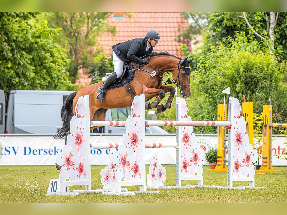 Aus Zeitgründen muss ich mich leider von meinem 14 Jährigen Wallach „Lucatoni“ trennen. Er war 2025 mehrfach hochplatziert und siegreich bis M** und überzeugt durch seine Übersicht, Technik und Vorsichtigkeit im Parcours. Außerhalb vom Turniersport ist er ein absoluter Allrounder, mit dem man in der Gruppe oder alleine auch super ins Gelände gehen kann. Auf Koppel steht er aktuell mit einer Stutenherde und versteht sich generell mit jedem Pferd sehr gut. Beim Schmied, Tierarzt und Verladen macht er keine Probleme. Lucatoni ist gesund, regelmäßig geimpft und schmerzfrei. Bei Interesse oder für weitere Informationen stehe ich Ihnen gerne telefonisch zur Verfügung. (Gerne auch WhatsApp)