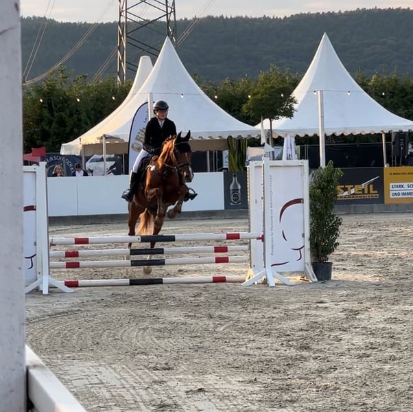 Zum Verkauf steht dieser hübsche 16-jährige Fuchswallach mit einem Stockmaß von ca. 164cm mit dem Spitznamen Fanta. Er ist bereits S-platziert und geht zurzeit mit einem Mädchen E und A Springen. Man kann mit ihm alleine und in der Gruppe ins Gelände gehen. Fanta ist sehr verschmust und hat keinerlei Unarten wie steigen, bocken, treten und beißen. Beim reiten versucht er es immer dem Reiter gerecht zu machen sowohl beim springen als auch in der Dressur. Auf dem Turnier im Parcour weiß er genau was er zu tun hat und kennt seinen Job und verzeiht auch mal Fehler des Reiters und schlechte Distanzen. Wir könnten uns für Fanta einen Reiter mit etwas Reiterfahrung vorstellen, der vielleicht auch den Fuß im Turniersport fassen möchte aber auch einfach zum Spaß und lieb haben. Bei Videos und wirklichem Interesse gerne melden! Er befindet sich Nähe Saarburg.