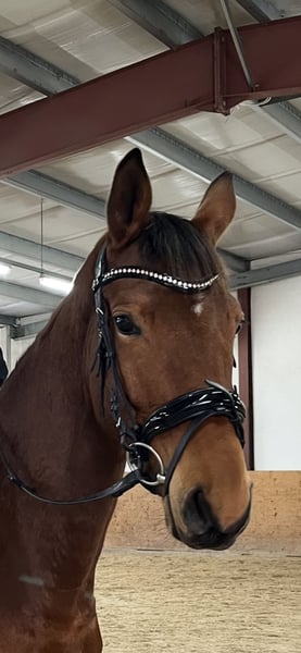 Versatile Premium Mare For sale is this stylish mare by Syriano, the successful son of Gribaldi. She is out of a premium mare mother by Kaiserkult x King Arthur. This mare impresses with three good basic gaits, absolute confidence, and strong nerves. She always wants to please and learns incredibly quickly. She is very well started under saddle, both in the riding arena and indoors, has already been out on trails, traveled in a trailer, and is familiar with everything a young horse needs to know. She has currently been measured at 165cm. She has always been healthy and is looking forward to a sporty future. Further information and videos available upon request with contact details.