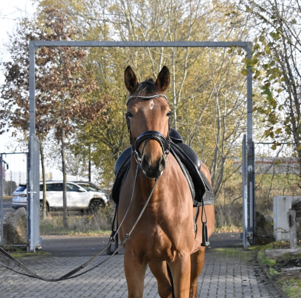 Jument polyvalente primée en Verband Cette élégante jument est issue de Syriano, le fils à succès de Gribaldi. Elle descend d'une mère inscrite en Verband, par Kaiserkult x King Arthur. Cette jument se distingue par ses trois allures de base solides, sa confiance absolue et sa stabilité nerveuse. Elle cherche toujours à plaire et apprend incroyablement vite. Très bien dressée, elle a été travaillée en carrière et en manège, a déjà été en extérieur, transportée en van et connaît tout ce qu’un jeune cheval doit savoir. Elle a actuellement une taille mesurée à 1,65 m. Elle a toujours été en bonne santé et se réjouit d’un avenir sportif. Un contrôle vétérinaire complet et 18 radiographies sont disponibles. Pour plus d’informations et vidéos, n’hésitez pas à nous contacter.