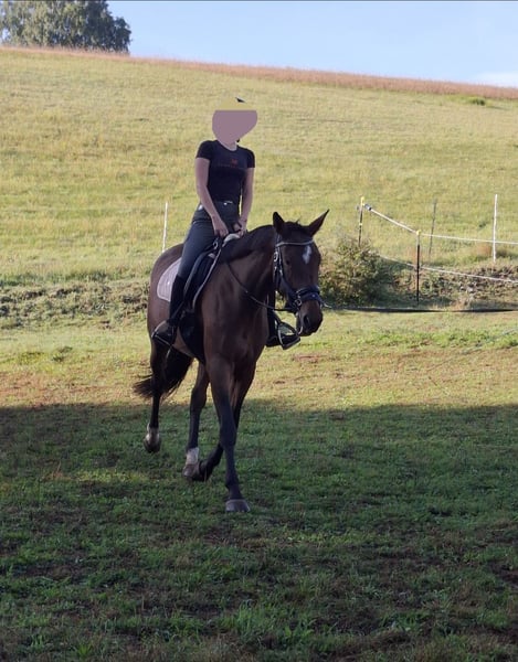 Mare (Zweibrücker x PRE) 6 years old 173 cm tall Hello, My name is Sinje, and I am looking for a new home. I am very curious and enjoy working. I can carry a rider’s weight in walk over short distances and am familiar with lunging and ground work in the arena. I am very confident when hacking out in the countryside and in traffic, and I can also go alone from the stable without any issues. Now, my owner would like to share a bit more about me: Sinje is a very, very curious and lively horse. She currently shares a pasture with two other mares and is dominant in the herd. She is very willing to work. When loose in the paddock or lunging, she shows wonderful gaits. Unfortunately, I am unwell myself and no longer have the time or physical capacity to further train Sinje or dedicate the attention she needs, as she is very eager to be worked with. So far, she has mainly been handled at ground level, and she is not yet properly muscled enough to comfortably carry a rider. She is familiar with a saddle, rider, and lunging, and these activities have gone well so far. She is confident when hacking out in the woods. Important: Priority goes to the stable place over the price. Sinje is sold as a leisure horse and is not suitable for competition. Due to her training level, she is not suitable for beginners! If you're interested, please feel free to contact me :)