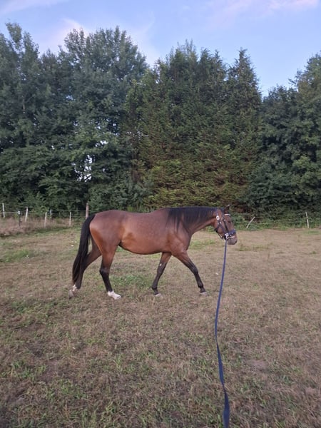 Jument (Zweibrücker x PRE) 6 ans 1,73 m Bonjour, je m'appelle Sinje et je cherche une nouvelle famille d'accueil. Je suis très curieuse et j'aime beaucoup travailler. Je supporte le poids d’un cavalier en marche, sur de courtes distances, et je suis à l'aise en longe et en travail à la main dans la carrière. Je suis très sûre en promenade en terrain varié et en trafic routier, et je peux aussi partir seule du paddock. Voici quelques détails supplémentaires fournis par ma propriétaire : Sinje est une jument très, très curieuse et vive. Elle vit actuellement avec deux autres juments en paddock libre et occupe une place dominante. Elle est très volontaire pour le travail. Lorsqu’elle est en liberté ou en longe, elle montre de très beaux allures. Malheureusement, je suis moi-même malade et je n’ai plus la capacité physique ni le temps de continuer à la former ou de lui consacrer autant d’attention qu’elle le mérite, car elle a besoin d’être stimulée. Jusqu’à présent, elle a principalement été travaillée à pied, ce qui signifie qu’elle n’est pas encore suffisamment musclée pour porter confortablement un cavalier. Elle connaît le tapis de selle, le cavalier et la longe, ce qui s’est toujours bien passé. En promenade en forêt, elle est sûre et fiable. Important : Priorité à la place, pas au prix. Sinje est vendue comme cheval de loisir et n’est pas adaptée à la compétition. En raison de son niveau de formation, elle ne convient pas aux cavaliers débutants. N’hésitez pas à me contacter si vous êtes intéressé :)
